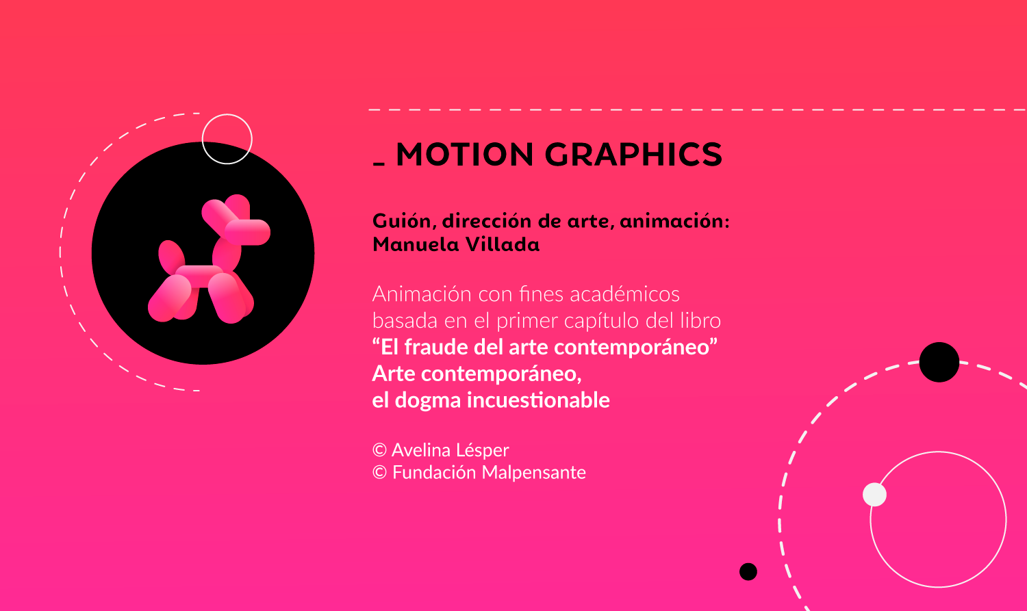Motion Graphics basado en el primer capítulo del libro "El Fraude del Arte Contemporaneo" Arte contemporáneo, el dogma incuestionable. Escrito por Avelina Lésper. Editorial Malpensante. Diseño, guión y animación: Manuela Villada. Locución: Salim Radi. Entrega final módulo 1 Academia Alpha.